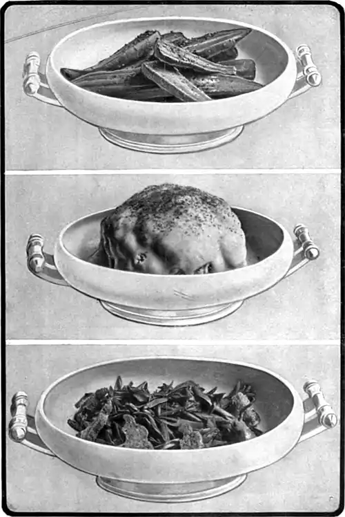 1. Carrots. 2. Cauliflower with White Sauce. 3. Scarlet Runners.