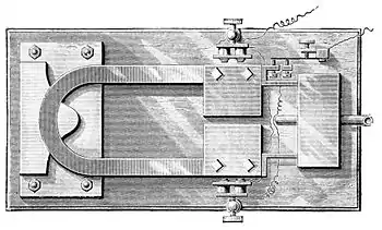 The Harmonic Engine.—This instrument is shown in Fig. 36. Mr. Edison claims that ninety per cent, of the power derived from the battery