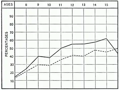 | Boys ———— | Girls - - - - - |