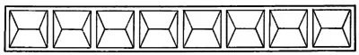 Fig. 14.—Each member of this frieze represents a relief ornament, applied upon the background, which in cross-section would be an isosceles triangle with a huge obtuse angle, or a space of similar shape hollowed out of the solid wood or stone. In running the eye along the pattern, it is interesting to observe how variously the patterns fluctuate from one of these aspects to the other.