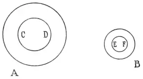 Let the two circles in the figure represent gaseous globes, of the kind supposed. The larger one represents the globe in a certain condition of its evolution; the second its condition after its volume has contracted to one half. The temperature in each case will necessarily