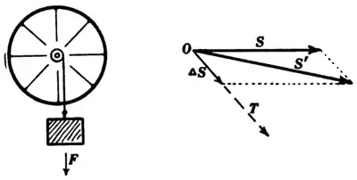 a body, and let the arrow T represent a torque acting upon the body. Then the arrow ΔS represents the amount of spin produced by T during a short interval of time, and the diagonal arrow S' represents the actual spin of the body after the torque T has acted for a short interval of time.