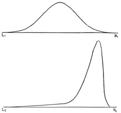 Chart 5. The Improvement Possible by Selective Breeding. The upper surface being taken to represent the existing distribution of Intellect, the lower surface represents what might be expected from, say, ten or twenty generations of breeding exclusively from the apparently best tenth of human Intellects.