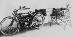 The device was constructed by W. M. Conover in his shop in Gettysburg, Pa., and is a complete success. Of course the motorcycle is of value to him in securing business, and the belt and pulley attachment can be removed with no trouble in a few minutes' time.