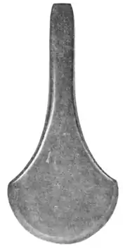 | Fig. 18.—Bronze celt, in the Museum, Bergen. | Fig. 19.—Modern African axe. In my collection, one-sixth natural size. |