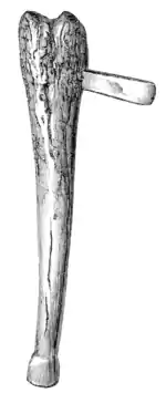 The next improvement was the addition of a pair of loops, by which the blade was still more firmly fastened to the shaft, as in fig. 22, which represents a specimen from Rostrevor Down. The loops are some way down the shaft.