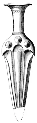 Fig. 38.—Bronze dagger from Ireland, two-thirds of the actual size.