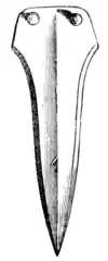 Fig. 39.—Bronze dagger-blade from Ireland, 13 of the actual size.