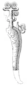 Fig. 40.—Bronze knife from Denmark, one-half of the actual size.