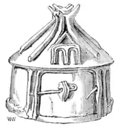 These cases are not isolated. In the year 1837 Dr Beyer found near Parchim a somewhat similar hut-urn in a tumulus, which, both from its form and as containing bronze, is considered by Dr Lisch as certainly belonging to the Bronze Age.[1]