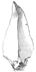 Fig. 90.—Arrow-shaped flake from Ireland. It is worked up at the butt end, as if intended for a handle.