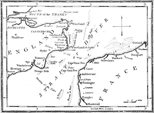 Thames. There was a brisk breeze from the south-south-east.[1] Hubert de Burgh, instead of making direct for the enemy, kept his wind as if steering for Calais, a manœuvre which caused Eustace to exclaim: "I know that those wretches think of invading Calais, as if they were thieves; but it is in vain, for the folks there are well prepared for them."[2] As soon, however, as the English had gained the wind of the foe—this is perhaps the first example of manœuvring for the weather-gage—they bore down upon the