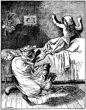 Thereupon the Grandmother hastened to dress poor Blanchette, who was still trembling with fear in the bed.