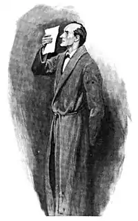 "If you examine it carefully you will see that both the pen and the ink have given the writer trouble. The pen has spluttered twice in a single word, and has run dry three times in a short address, showing that there was very little ink in the bottle. Now, a private pen or ink-bottle is seldom allowed to be in such a state, and the combination of the two must be quite rare. But you know the hotel ink and the hotel pen, where it is rare to get anything else. Yes, I have very little hesitation in saying that could we examine the waste-paper baskets of the hotels round Charing Cross until we found the remains of the mutilated Times leader we could lay our hands straight upon the person who sent this singular message. Halloa! Halloa! What's this?"