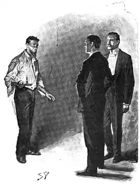 The fellow looked at us in a helpless way, and he wrung his hands together like one who is in the last extremity of doubt and misery.
