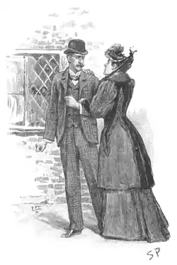 "I was struck dumb with astonishment at the sight of her, but my emotions were nothing to those which showed themselves upon her face when our eyes met. She seemed for an instant to wish to shrink back inside the house again, and then, seeing how useless all concealment must be, she came forward with a very white face and frightened eyes which belied the smile upon her lips.