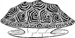Length, ten inches; ashy brown, with black engraved lines on shield, and specks on head, neck and legs; face, horn color, orange underneath.