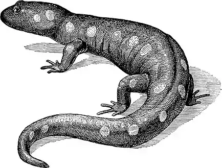 Length, twenty-four inches; brown, spotted; bright-red gills in three tufts on each side. Aquatic. Western and Southern.