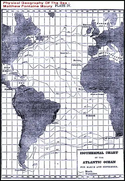 484. We have here, then, at work upon these trade-wind zones, a force now weak, now strong, which, of course, would cause these zones to vibrate up and down the ocean, and within certain limits, according to the season of the year. These limits are given on Plate VIII. for spring and autumn. During the latter season these zones reach their extreme northern declination, and in our spring their utmost limits toward the south.