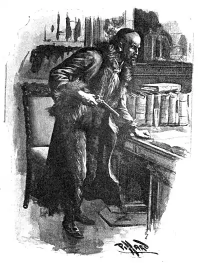 The heavy key fell from the hand of the alchemist; he staggered against the door of the bookcase he had opened, and it shut behind him with a crash of glass and a splintering of wood.