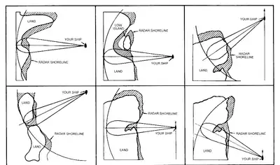 Another major problem lies in determining which features in the vicinity of the shoreline are actually represented by echoes shown on the repeater. Particularly in cases where a low lying shore is being scanned, there may be considerable uncertainty.