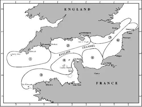 Each volume of the Sailing Directions (Enroute) contains numbered sections along a coast or through a strait. Figure 403a illustrates this division. Each sector is sub-divided into paragraphs and discussed in turn. A preface with information about authorities, references, and conventions used in each book precedes the sector discussions. Each book also provides conversions between feet, fathoms, and meters, and an Information and Suggestion Sheet.