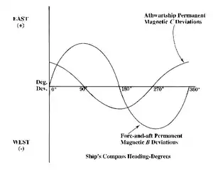 | Coefficient | Type deviation curve | Compass headings of maximum deviation |