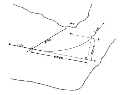 - From D measure the advance, 920 yards, back along the original course line. This locates E, the point at which the turn should be started.