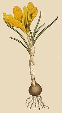 We have figured the yellow variety, which is the one most commonly cultivated in our gardens, though according to the description in the Flora Austriaca, the Crocus vernus, in its wild state, is usually purple or white.