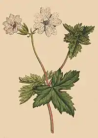This species is distinguished by having white petals, finely reticulated with red veins, and the corners of the divisions of the leaves marked with a spot of a purplish brown colour, which Parkinson has long since noticed.