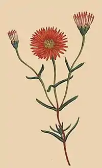 Specific Character and Synonyms.MESEMBRYANTHEMUM bicolorum foliis subulatis punctatis lævibus distinctis, caule frutescente, corollis bicoloribus. Linn. Syst. Vegetab. p. 470.