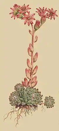 By the old Botanists, this plant was considered as a Sedum; and to this day it is generally known in the gardens by the name of the Cobweb Sedum, though its habit or general appearance, independent of its fructification, loudly proclaims it a Houseleek.