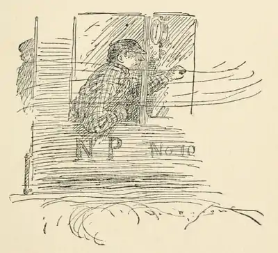 He fired about six weeks and was given an extra engine to run. So heavy was the wheat crop in the upper country that within a year Jap was running a yard engine in a Tacoma yard; a most important position. They had a yard speed limit in Tacoma when Jap hit town, but none afterward. He switched cars at forty miles an hour and nerer broke a draw head, though he did break a few links. There was nothing for the other four engines to do, so they laid them off and the news went all over the country. The officials of the road came and saw from the high bluffs the work of this phenomenon below. The yard master complained and the officials said he hadn’t hurt anything. “Keep out of the way and let him run. He is doing the work of four engines and crews.” It was true he used up a car load of sand each day on the track as he approached cars, but cars were never kicked as he was kicking them. Combination-fly switches had never been invented in other yards that he was using. The oldest and toughest freight brakeman jumped out of his cab every day though he never cracked a bumper. In fact, children could have coupled them for him. He made combination switches that curled some people’s hair, but his stayed straight. Papers wrote editorials about him and cheap actors made puns on him at the vaudeville shows. When Mr. Palmer heard of Jap’s popularity he said, “Just wait and give him time.” When my vacation came I went to Tacoma just to see his work and though he didn’t know where the steam got into the cylinders or where it got out, he certainly put up the hottest game in the railroad way anyone ever saw. His duty in the morning was to follow the overland up, through the long yard to the upper depot and if the traffic was not heavy there he would hitch on to the rear coach and haul her back, but the last time Jap hitched on there wasn’t anything to come back. One foggy morning he thought the passenger had time to get up so he was just clipping along about “forty-five per,” laughing with his brakeman and his fireman, watching the thick fog part and go on either side of his engine, when all at once he saw the rear of a Pullman. The train had stopped for something and the flagman hadn’t gone back. It didn’t give Jap as long as he would like to have had to make up his mind. He shut off, reversed and pulled her wide open and then jumped out the window. They were on a high trestle at the time. The engine went through two cars before it thought of starting back, then it pulled out sticking to the track. It fairly howled as it tore down through the Tacoma yards with its broken whistle and smokestack. They had changed some switches behind them and one was on a track that had a fine line of observation coaches that were waiting for the summer trade. It didn’t do much to them; there wasn’t enough left of them to tell whether they were made at Dover, N. J., or Pullman, Ill. From there she went across the turn table into the roundhouse and out through the brick walls into the Puget Sound where she cooled down, and they are still figuring on the cost of the trip. As for Jap himself, on the fall he got mixed badly and lost an arm and a leg by compound fractures. His men escaped with less injury but it didn’t stop him; he got a tricycle that he lives on, and in Tacoma you will see the sign—it’s popular with the railroad men—it reads, “Jap Libby, Railroad Cigar Store.”