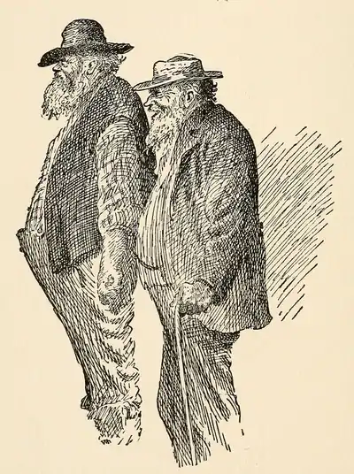 in the same house with the banker, and with that Jake McClaine there were no partners, and nobody ever asked to be his partner. Few, if any, were capable. I never saw a funeral pass through Silverton that Jake McClaine didn’t ride his bay mare at the head of the procession, and I heard of one passing through town where he rode at the head that I was unfortunate enough not to see. They were the only times he ever grew very serious; no one ever died in the vicinity but what Jake McClaine was there when they needed help. If they were poor or rich or just well to do, he took complete charge; made the arrangements for the funeral and rode ahead and let down the gaps in the rail fences and whether the funeral was over a fellow pioneer or someone’s hired man, with bare head, with his white curly hair and beard, he looked as fine a type of just plain man as you ever saw. I never saw him look worried only once at the graveyard, and that was the first year the band tried to play at Decoration Day exercises. The graveyard hadn’t been running long and there was only one soldier buried there, but the G. A. R. wanted to remember him, so the band and Uncle Jake went there with the big parade just as if the graveyard was full of soldiers. Jake rode the bay mare ahead of the procession as usual. Part of the band lived in the country and didn’t get into town to practice as much as they should. We had just got some new music and among it was a funeral dirge, the first ever brought out there. It was No. 21 in the new book. The country members were late getting in and the big rush and the few stiff beards at the barber shop put them still later getting to the band hall, where the procession was to form and march to the church. They came finally, out of breath, and we were half an hour late, so we went to the church on double quick march, backed up to the church solemnly and started for the graveyard down below town. No. 21 in the old book happened to be our favorite quickstep, so when the leader yelled No. 21, the town members turned to the dirge and the countries turned to the quickstep. We had been playing about half a mile when I noticed there was something wrong; we didn’t just seem to swing right. It was hard for some of the old soldiers to keep step. At the graveyard there was a big crowd waiting and me playing the snare drum, which was muffled in black. I could look around, and I saw by the expression of Jake McClaine’s face that there was something wrong. We were game, though, and played right up until we surrounded the grave, and stopped. There were two bass players, one from town and one from the hills, and they made a peculiar contrast. Nobody mentioned it, but the joke was out and an old soldier with a wooden leg said to Jake, “No wonder I couldn’t keep step, when I used to in the army without any trouble.” Jake MeClaine said to him in a low voice, “Keep step! I nearly fell off my mare.”