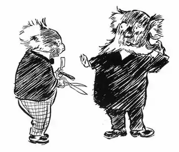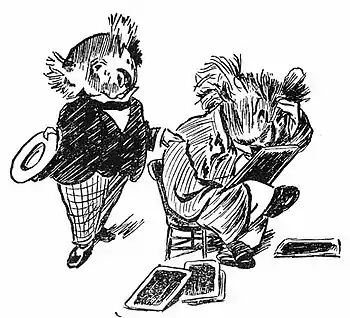 "Albert, Albert," said Bill to the Puddin', "where's your manners?"