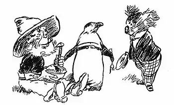 "It's a —. Shall I tell him?" he asked, looking at Bill. Bill nodded, and the Penguin leaned across to Bunyip Bluegum and said in a low voice, "It's a Magic Puddin'."