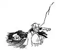 "Don't strike a poisoned man," shouted the Usher; but the Judge went on smacking and cracking him with the bottle, singing—