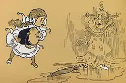 "I'm very sorry, indeed," said Dorothy, who was truly frightened to see the Witch actually melting away like brown sugar before her very eyes.