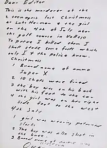 - Zodiac Killer letter, San Francisco Examiner, July 31st 1969