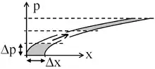 The figures to the right depict this motion by showing the region occupied in phase space at time, t=0, and at some time later. Figure 3 depicts the phase space of a particle that experiences a constant force. The initial configuration fills a region of phase space that includes a particle at rest at the origin (lower left corner of the shaded shape. This initial region includes a small initial displacement (up to approximately Δx) as well as a small initial momentum (up to approximately Δp). As time evolves, these particles, initially near the origin and nearly at rest, will accelerate. The second grey shape of Figure 3 shows these particles at a later instant in time.