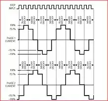 Attached are some diagrams of what a basic stepper motor wiring diagram will look like. Also attached is a chart that displays how a full voltage to position map must be created to operate a stepper motor.