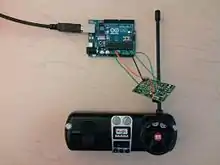 - Put voltage divider on the Motor + circuits and increase RC receiver power to increase transmit range ... or check batteries in the transmitter.