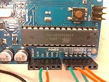 - LED + - (green, orange)