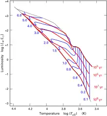 10. A star that is increasing it's temperature while maintaining constant luminosity is