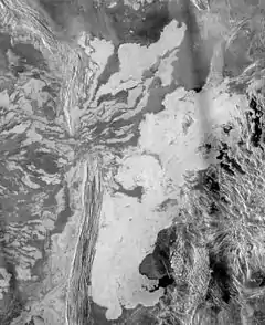 One of the most interesting characteristics of radar images is the diminishing of reflection at high altitudes, exhibiting extremely low values beyond a radius of 6,054 kilometres (3,762 mi). This change is related to the diminishing of emission and temperature at high altitudes.