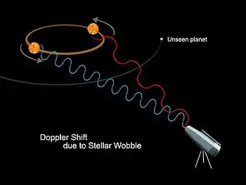 Illustrating the red and blue shift for the observer from an exoplanet.