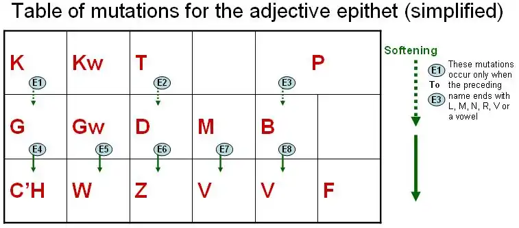 Go to the Quiz Mutations of the adjective epithet (simplified)This lesson does not treat of the following exceptions (the next lesson on mutations gives the corresponding rules) :