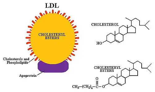 - The lipoprotein responsible for transporting the majority of cholesterol is a low-density lipoprotein (LDL). LDLs have apolipoprotein B which wraps around the sphere and has a role in bringing the cholesterol into the cell.