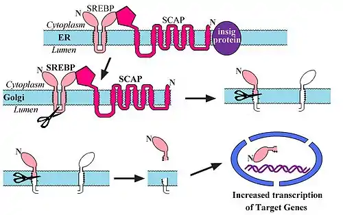 - In this complex SREBP cannot be trafficked to the Golgi Apparatus.
