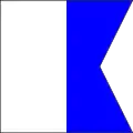 - International code flag "Alpha" (White hoist, blue swallowtail fly)